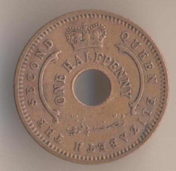 Federation of Nigeria. One halfpenny 1959, bronze, mintage - 52800000 pcs. Ruler: Queen Elisabeth the Second. The single release only.