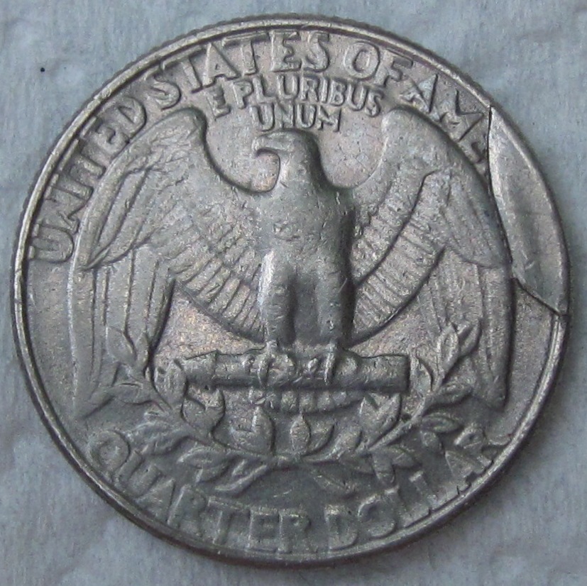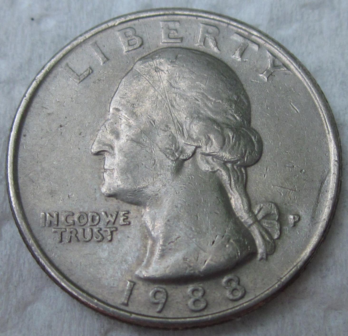 Here is a 1988 quarter with reverse cud. Coins like this one are circulating so keep your eyes open for them. This 1988 has seen some circulation. I’d wager that it has been in thousands of pockets & purses before it got pulled from circulation. It is not listed in my cud books. Here are a couple links describing cud errors: http://coins.about.com/od/coinsglossary/g/cud_defined.htm http://rareerrorcoins.com/cud-errors/ Thanks for letting me share. Post ‘em if you got ‘em.