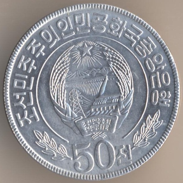 They released 3 types of coins: 1. Coins with two stars - for tourists from capitalist states. 2. Coins with one star - for tourists from socialist states. 3. Coins without stars - for citizens of North Korea. This is the coin with one star (for socialist visitors).