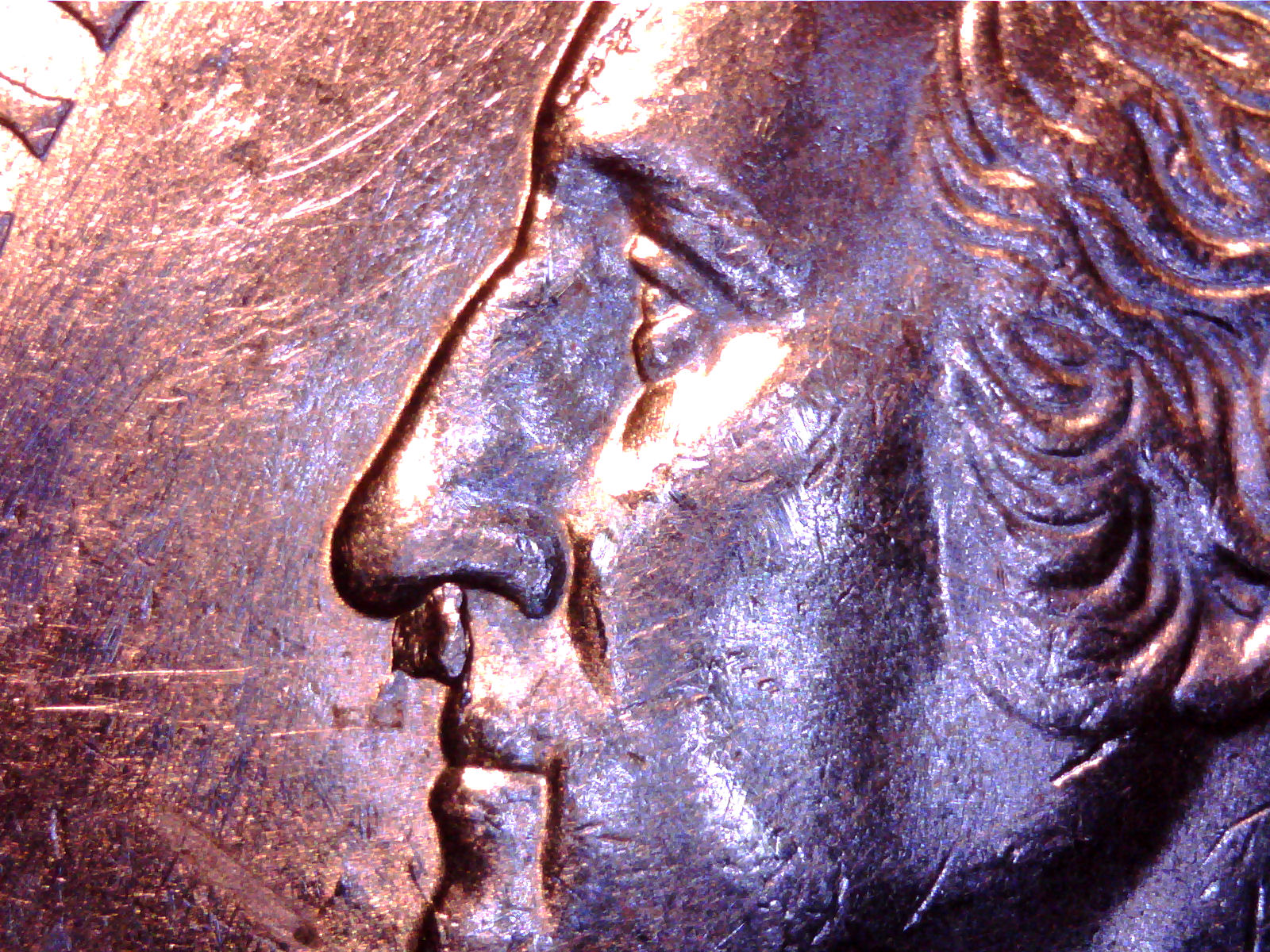 Nostral (Nostril) chips...snack food. Suddenly, I don't feel hungry at all. I have a few dimes with nostral chips. Eyebrow chips. Lip chips. You name it chips. But it was this Oregon quarter I found that made me laugh.