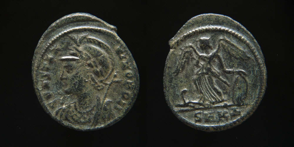 For instance, what would you make of this coin? Constantine II as Caesar, AD 317-337 AE Follis, 18mm, 2.9g, 6h; unofficial but with Trier mint mark, c. AD 324. Obv.: CONSTANTINVS IVN NO C; Laureate head right. Rev.: DN CONSTANTINI MAX A; VOT XX within wreath // PTR. Notes: Obverse of RIC VII Trier 459, reverse of Trier 324. Since both types were minted in AD 324, it's possible that dies were accidentally mismatched, but Curtis Clay suggests the coin is unofficial because of the misspellings NO (for NOB) and A (for AVG) despite the good style. So would you call it unofficial, or irregular?
