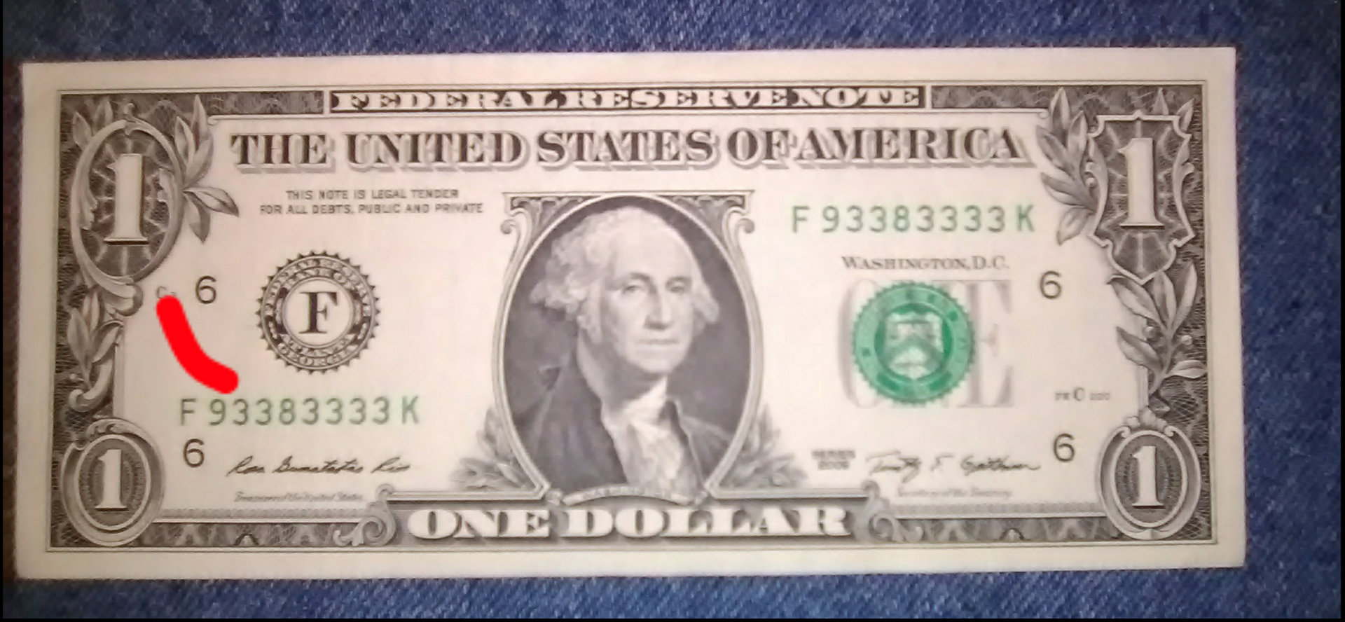 The... note number position... on this one dollar bill at the end of the red line next to the six... how high can this number be? Thank you