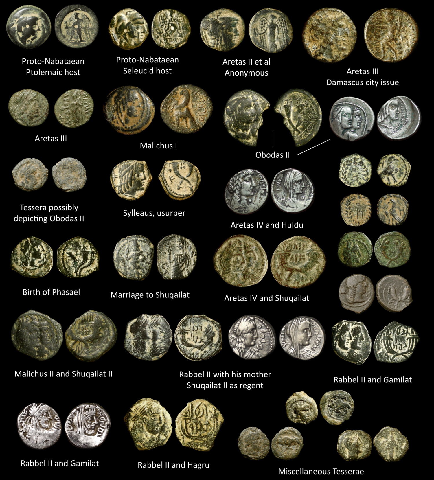 This is a great thread idea, and it's been instructive to read. I'm an avid goal setter - most of my days start with making a detailed to-do list - and like others, my goals can be broken down into organization, collecting, and reading. Some of you know that I have a large collection of Nabataean coins - it's a specialty that appealed to me early in my collecting career, and I've gradually acquired an enviable type set of all the kings (if in fact there's anything even remotely enviable about having a collection of Nabataeans). At this point, the only pieces I can add are rarities that only come on to the market occasionally, and at great expense. I'm shooting for one in Triton XXV, and I'm going to have to go deep with a Hail Mary pass on it - it may end up being my largest outlay on a single coin. At any rate, I have a great many coins I need to organize and photograph. At one point I was maintaining an informational website about Nabataean coins, but I didn't have the resources to continue it. A few years back, Joe Sermarini at FORVM invited me to post pages about my collection, so I may take him up on it, if the offer is still open. Here is a sample spanning some 4 1/2 centuries... I've been toying with assembling a collection of the coinage of Bostra, which is a natural progression, as Trajan began minting there after the Roman annexation of Nabataea in AD 106.