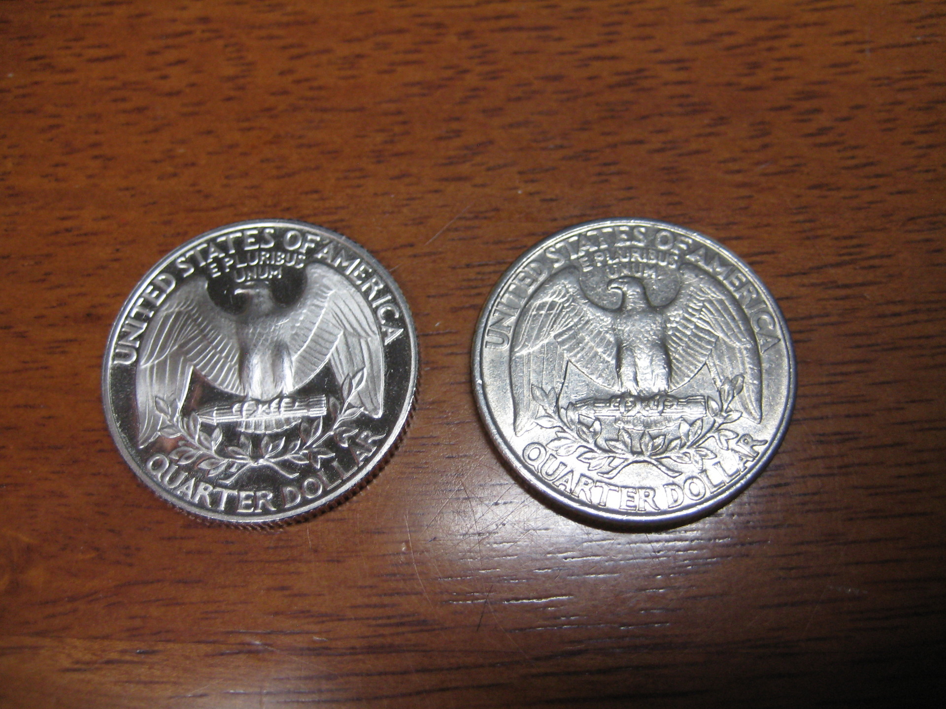 One is a proof, it's supposed to be shiney the other is a business strike, it's not supposed to look like a proof.