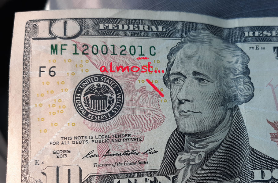 Found an almost really cool serial number today but accidentally spent it before I could scan it (definitely remembered this number though) would have spent it anyway but wanted to post it first... ahh well.. B 00655500 F