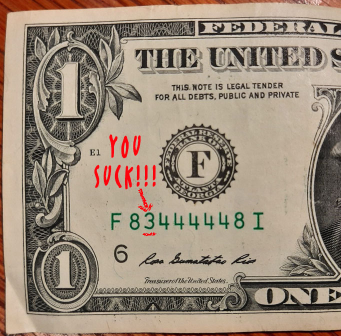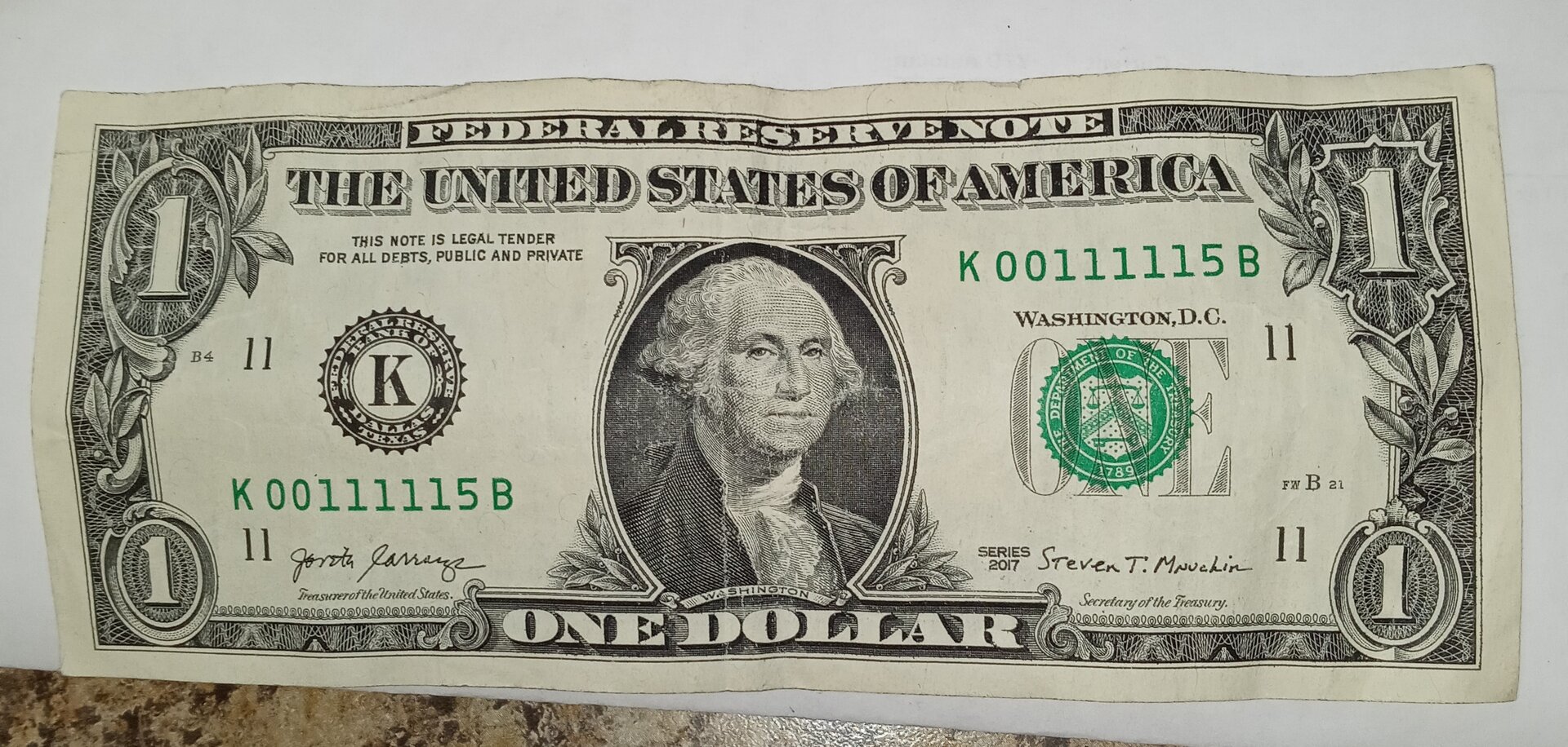 Back in the late 50s-very early 60s right after we moved to So. CA, LA-based KTTV channel 11...now a Fox affiliate, I believe...gave weekly prizes away for finding a $1 bill with an 11 (two 1s in succession) in the serial number. I badgered my parents all the time to see their $1 bills, but never found one.