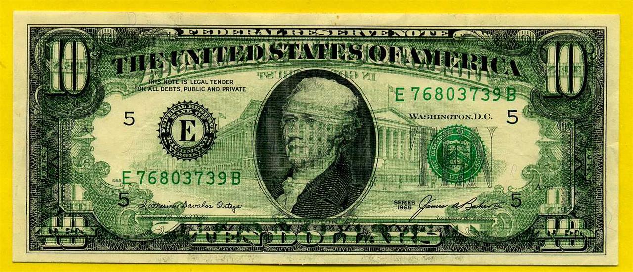 Kind of cool to know that back in the 70's someone new to keep that note in perfect condition. I'm betting it's probably a teller find, or maybe a strap find? Nice :hail: !!! PCGS should call it a 90% instead of going with an all or partial listing? I actually picked up a Full Back to Face offset '85 $10 E/5 (PCGS VF-35) last week. One thing I can tell you; They don't come cheap! Here's the listing photo...