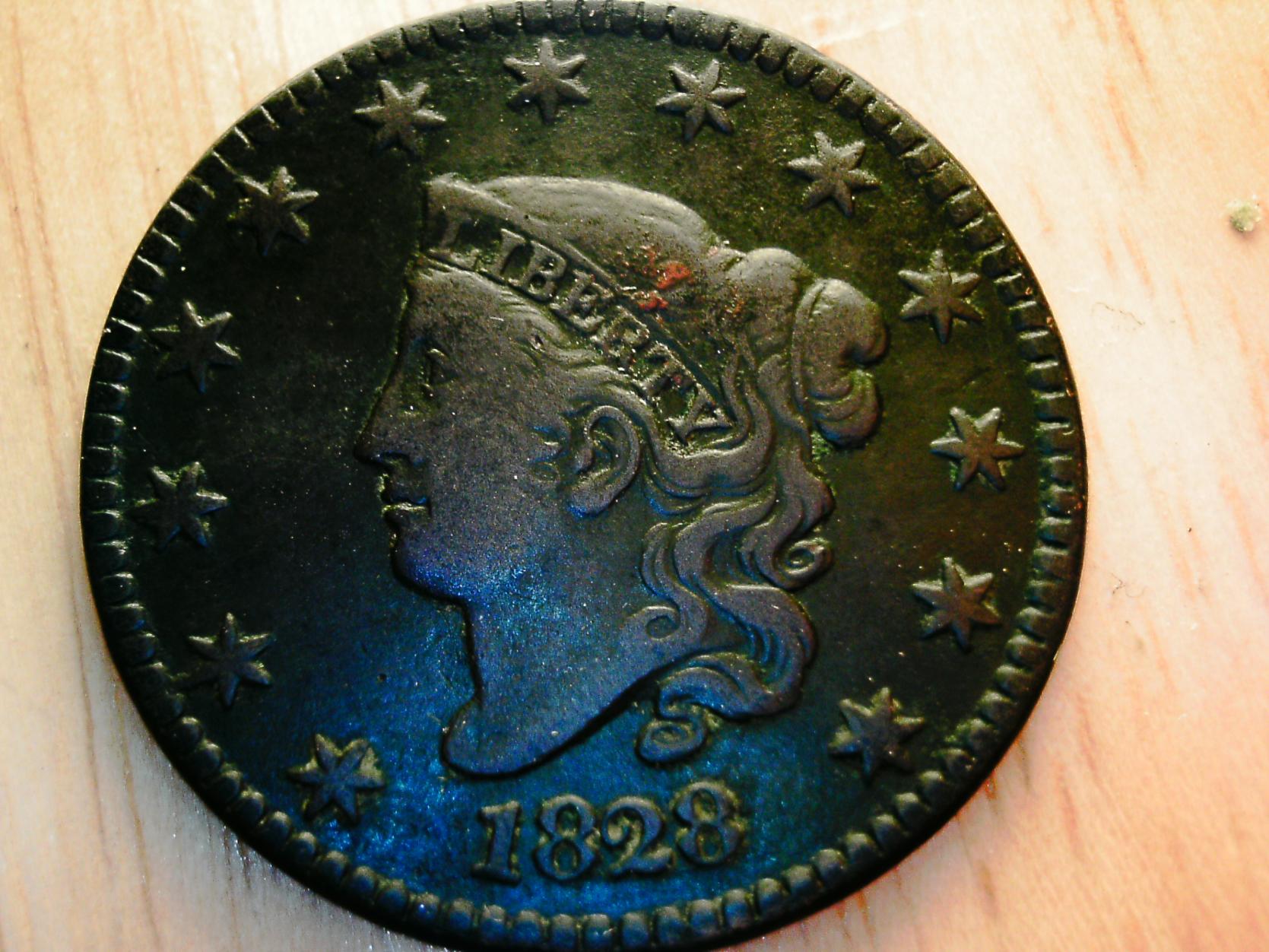 And even happier making is the fact the "flaw" I didn't really notice at 1st (a blob covering part of the word liberty that i mistook for a swirl of hair) turned out to be...... Gum! Also add some sticky yellow brown resin of some type on the back. The blob of gum all but fell right off when I poked a bit with my fingernail and I'm pretty sure after a quick acetone dip the sticky stuff on the back should come right off. All in all for $20 I am VERY happy with this coin regardless of what it grades out as (though I would still like grade opinions.) Note that I haven't made any atempt to rub or scrape off the sticky stuff that hopefully will all come off once dipped. Watcha think