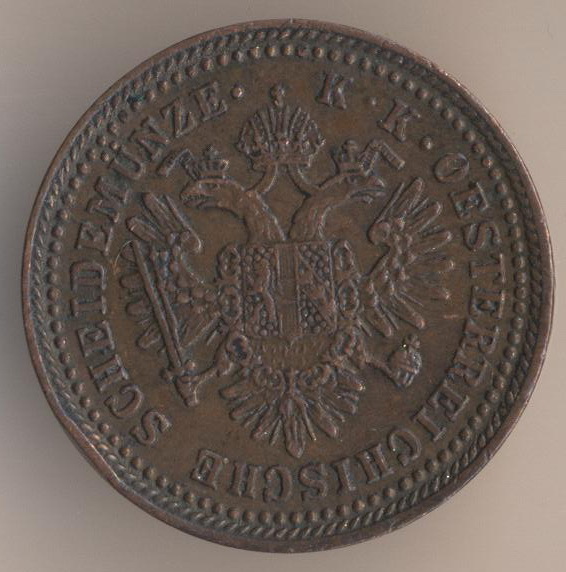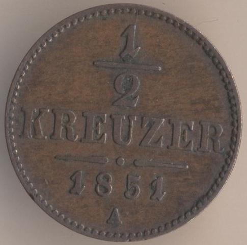 1/2 kreuzer 1851, copper, weight - 2,7 g., size - 19,7 mm, thickness - 1 mm, mintage unknown. Engraver: Johann Weiaa. Vienna Mint. Single release. Demonetized at September 30 1863.