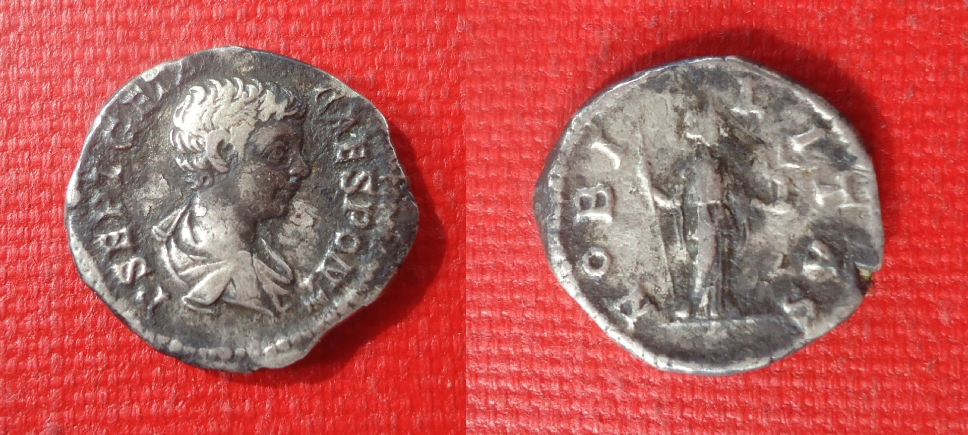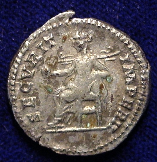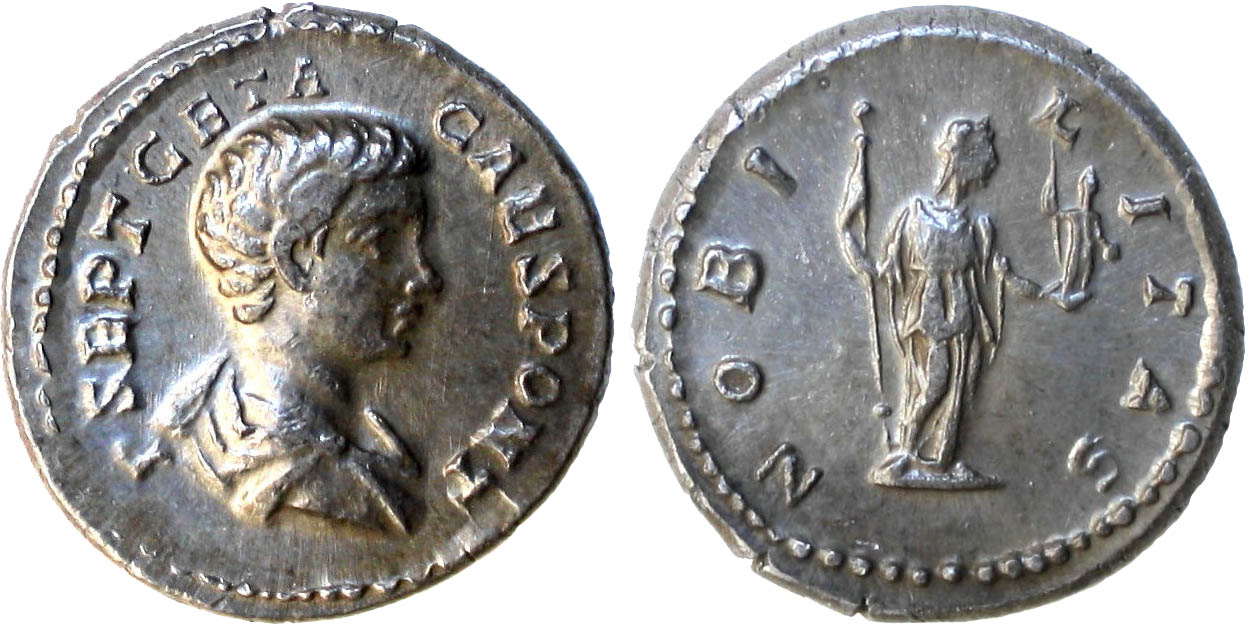 Thanks for sharing that story, Al - the Peter Rosa saga is interesting, if not in a good way. Too bad the dealer was so hard-nosed about the price way back when. It would have fooled me when I was starting out. I am assuming Rosa was pressing (rather than striking) these? The obverse on yours has that kind of flat look to it that I associate (inexpertly) with a pressed fake. This counterfeit talk made me nervous - I went to my small collection of Severan silver because I thought I had a Geta/Nobilitas. Mine is rather encrusted with black stuff, but I think it is ancient. I hope. Geta (as Caesar) (199-204 A.D.) Rome Mint - Denarius P SEPT GETA CAES PONT bare-headed, draped bust right / NOBILITAS, Nobilitas standing right, holding scepter and statue of Minerva (or palladium?) RIC 13a; RSC III 90 (3.02 grams / 17.5 mm)