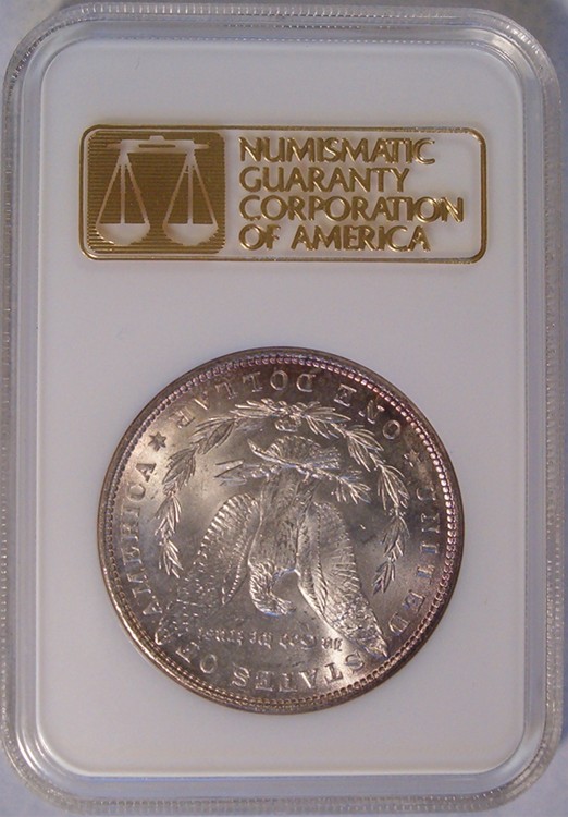 Here is a cool old NGC slab. According to Conder101's slab generations, it is an NGC #3; used from late 1987 to late 1989. The Morgan in it is a solid MS-64. Charlie