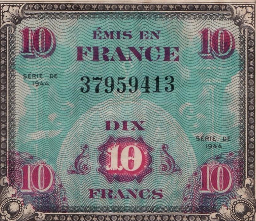 They french bill was used by the Allies when they were there and had to buy stuff.Each soldier was issued around 4.30 US dollars worth.Sorta like military pay.