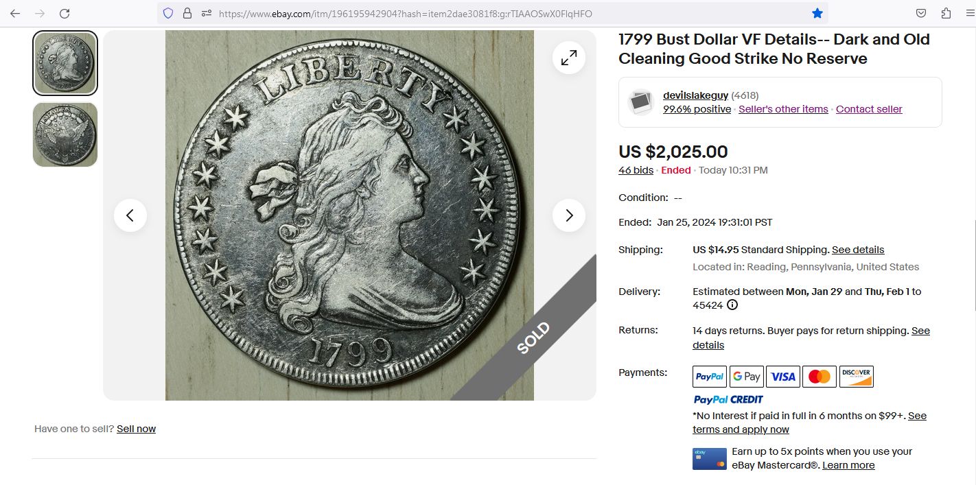 Here is a genuine 1872-S half dollar. I down loaded this from the PCGS Coin Facts site. Here is the bad one. This one is really deceptive. Here is the counterfeit 1796 half dollar I mentioned earlier. This piece was sold at auction in the 1960s as a genuine coin. PCGS picked it up when it was submitted for certification many years later. Here is a genuine piece.