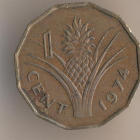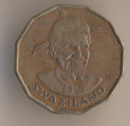 Kingdom of Swaziland. It's a small African country with a population about 1105000. Swaziland has an area 17363 sq.km. The national currency of that kingdom is a lilangeny. One lilangeny = 100 cents. We can see the one-cent coin of the king Sobhuza II (1968-1982).