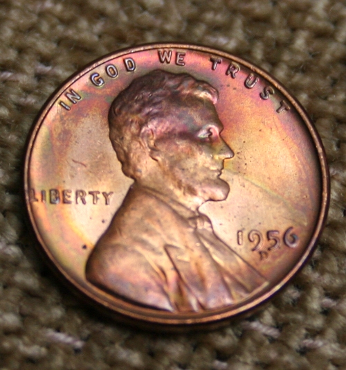 Although I collect toned coins, I generally stay away from toned copper. My personal opinion is that it is too easy to artificially tone copper and have a convincing result. I do keep any I find in mint or proof sets though. At least I am more confident the colors are natural. The vivid greens are the ones I feel look the nicest. Here are a few I have pulled from sets. I also like the "tiger" toning and furious red that is common on many high luster wheaties. I also have a few of these, which I have shown plenty of times. 1970 proof cents are notorious for wild bullseye toning. Some more attractive than others. As some modern cent collectors know, this year will always make it into a slab with the TPG's. One of these went to Gonzo, but I am not sure which one.