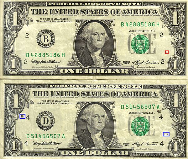 One dollar bill numbers on back meaning