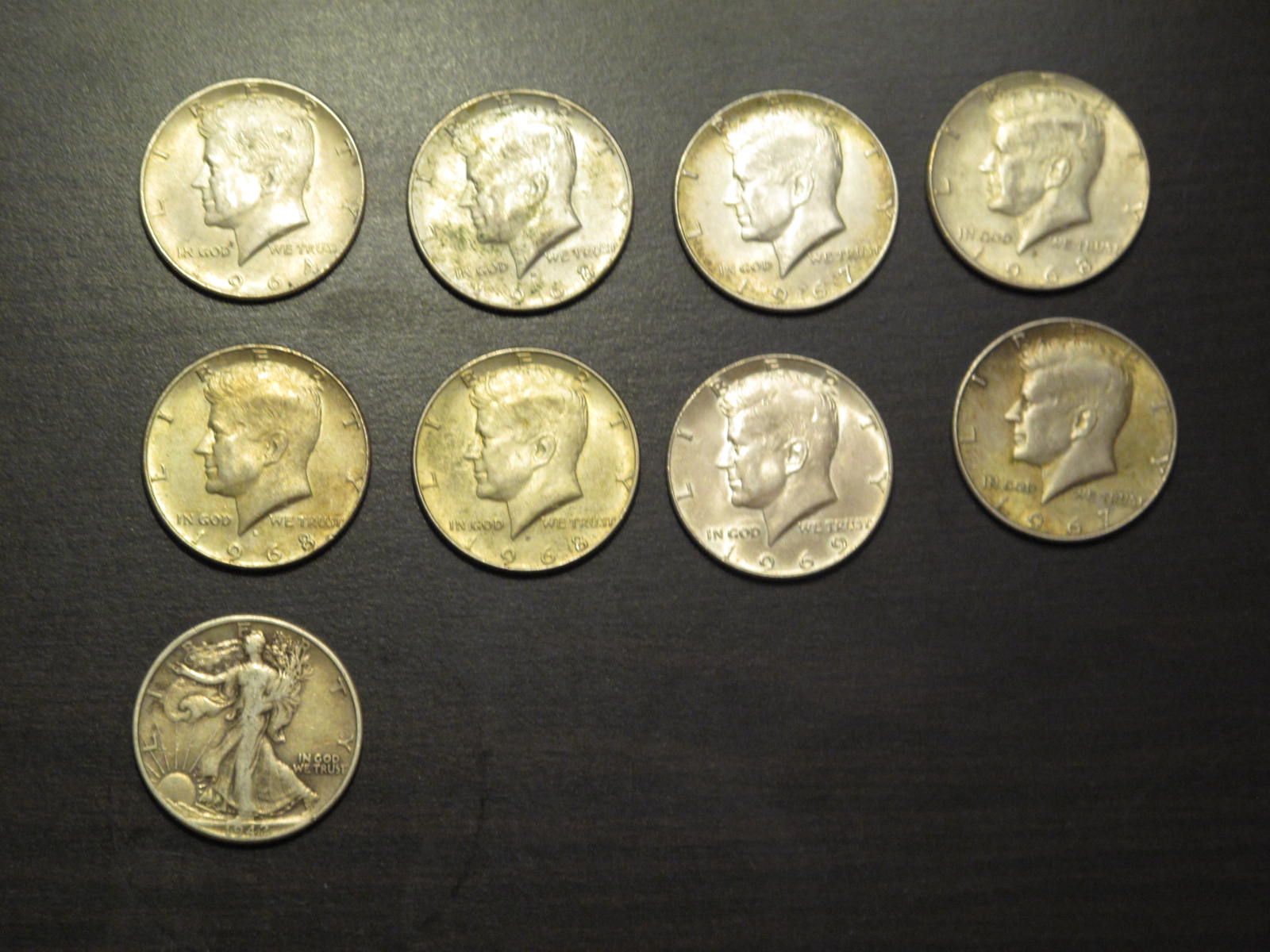 This is by far the best find I have had in quite awhile... Finds: -1 1964 90% Kennedy Half-Dollar -4 1968 40% Kennedy Half-Dollars -2 1967 40% Kennedy Half-Dollars -1 1969 40% Kennedy Half-Dollar -1 1942 90% Walking Liberty Half-Dollar All for searching $22.00 worth of Half-Dollars... Thanks for viewing! Thanks, Daniel