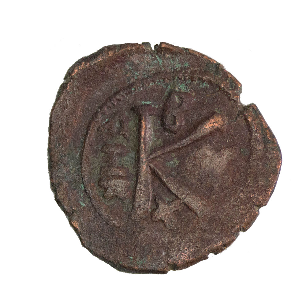 Arab Byzantine Fals Ummayyad Caliphate - Mu'awiya I ibn Abi Sufyan (AD 661 - 680) Three standing figures type. Tabariyya (Tiberias) mint. Dual lingual in Greek and Arabic. Nice full strike on wide flan. During the early years of the establishment of the Islamic caliphate, the Ummayyad Caliphate adopted AE fals imitating Byzantine coinage which were dominant in the area.