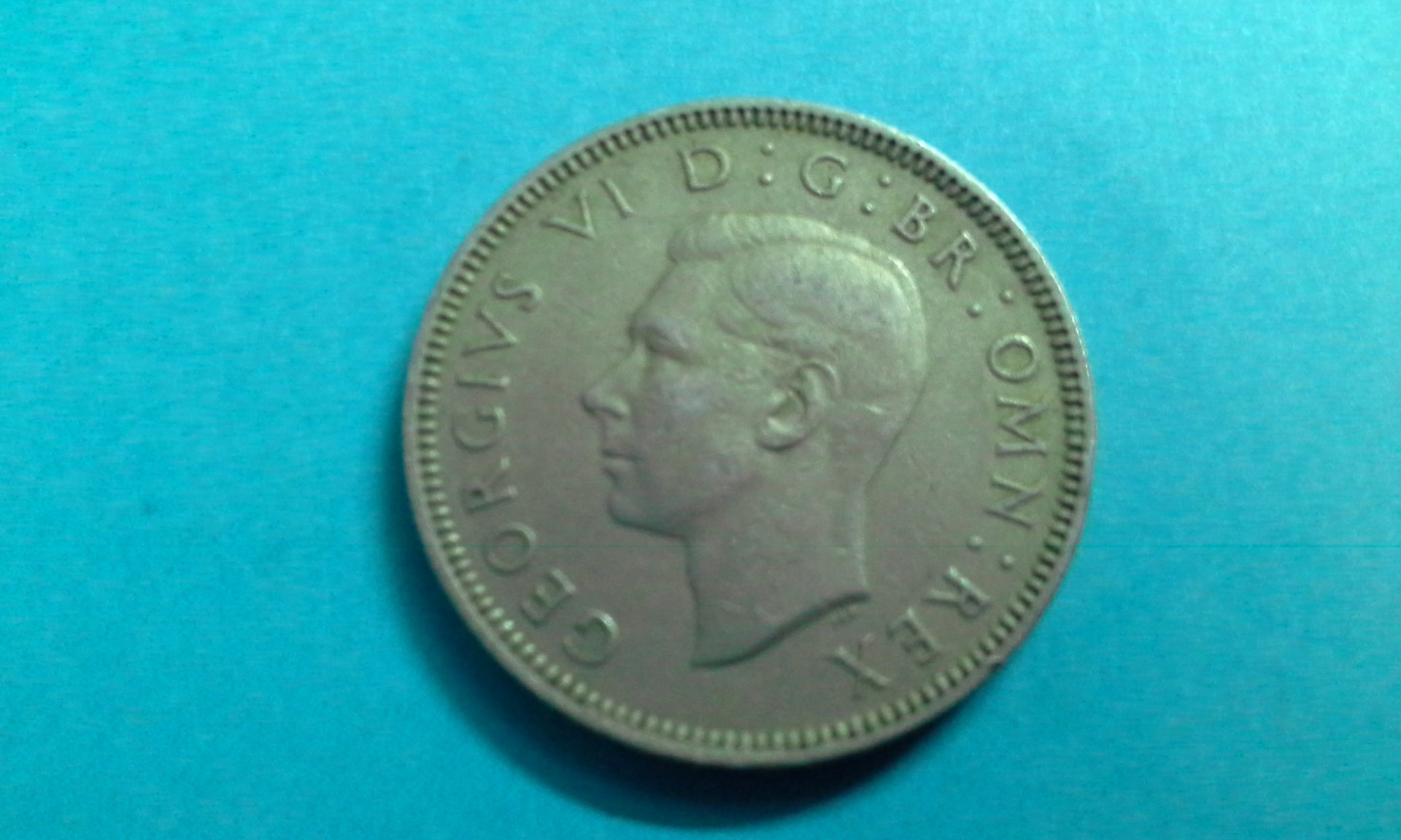 I have one and two shillings George VI,1948 issue. I have checked my collection. So far I don't have the 1950 English version Note: the obverss with the black dirt is that of the two shilling coin.