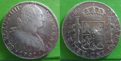 I noticed this coin on ebay from a seller in Spain. May want to consider avoiding buying coins like this from there. In recent years there have been many fakes, as well as altered and problem coins offered at problem-free coin prices. To such an extent that many people I know will not even consider buying coins from Spain. The plus side is that these 8 reales coins are plentiful at fair prices from a variety of countries.