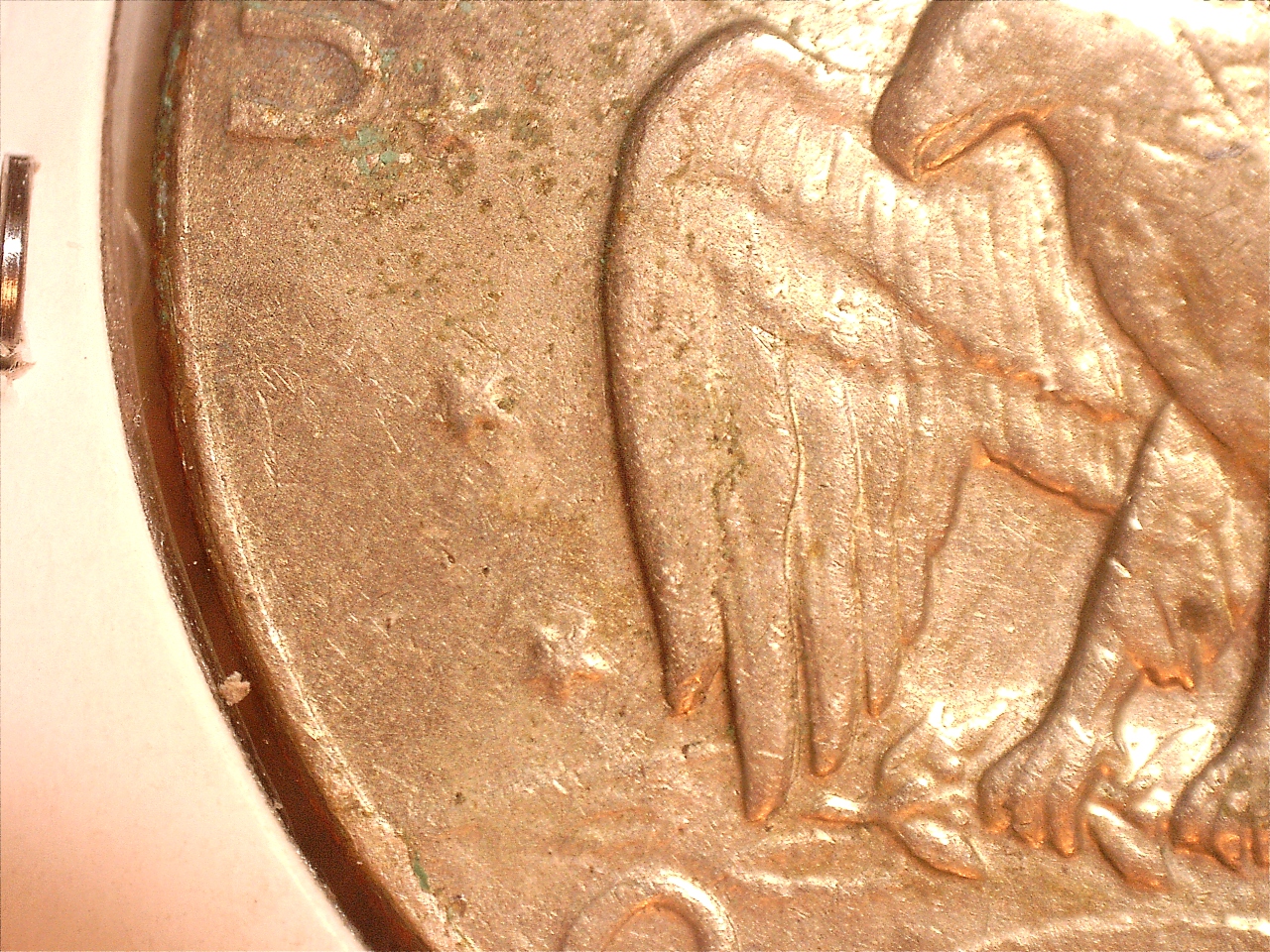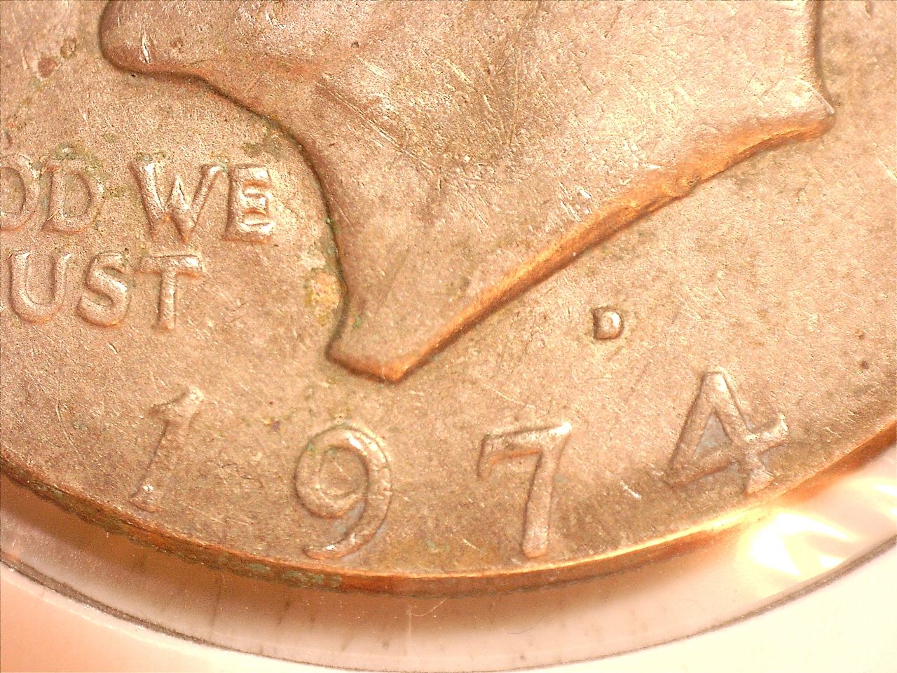 Got word thru my bank that a branch had some silver dollars, 42. So I go and buy all. The 1974 D got my attention. Looking at it thru my 16X loop, I see UNUM is doubled, maybe. The D is filled, plugged die and the "moon" is 3/4's round and the stars are not sharp. I don't find much on these IKEs. Take a look.