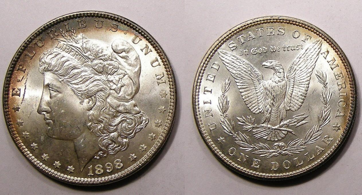 Bought this 98 Morgan on the Bay today. What do you think the grade of this coin is? I might have overpaid a bit, but I love that crescent toning.