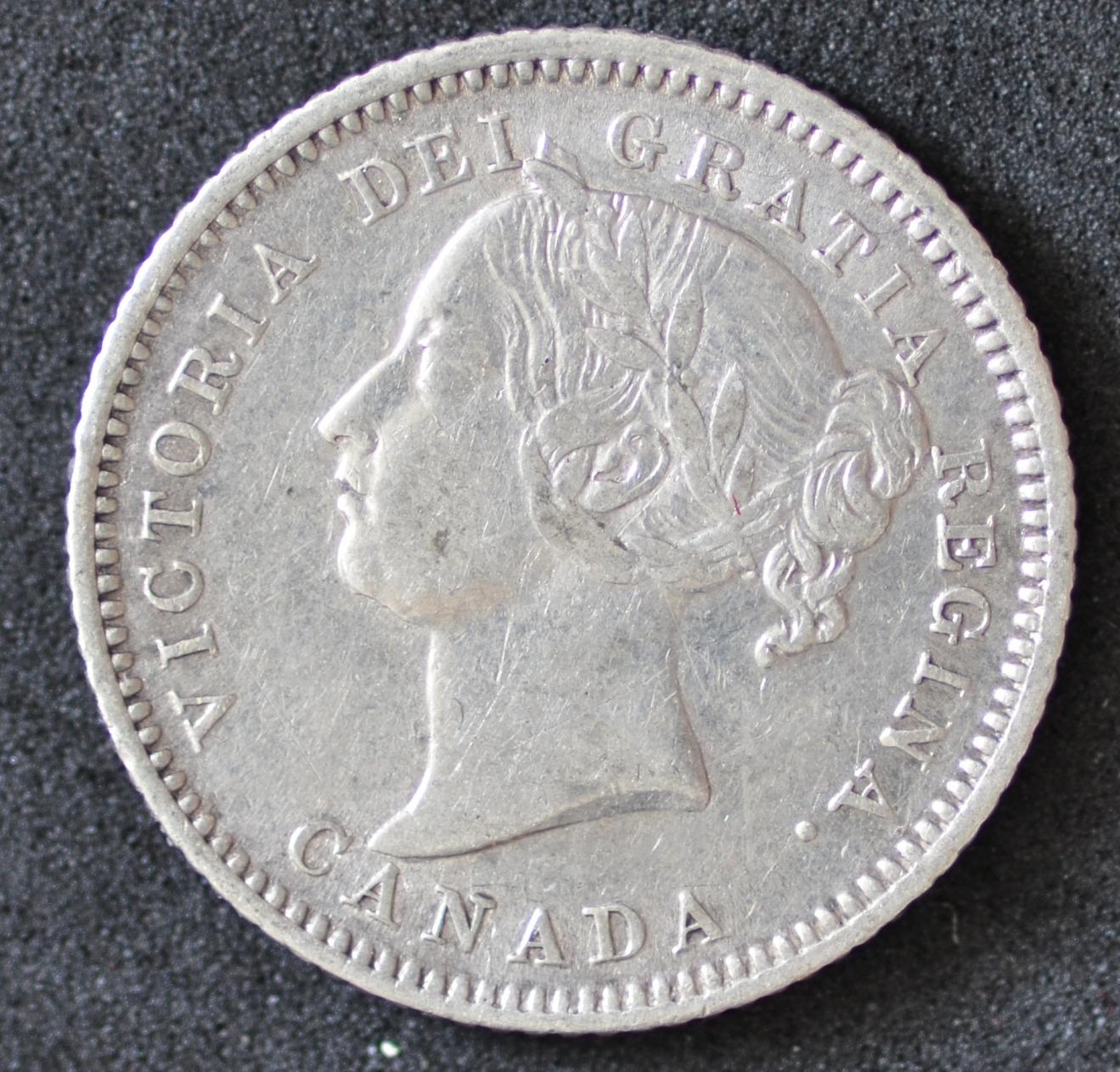 The 1880H Canada 10¢ seems to be in VF condition and catalogs around $100. The 1925 5¢ is frequently counterfeited, so it may be best to have it certified.
