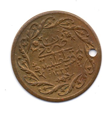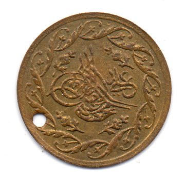 The "coin" might be part of a "belly dancer" costume. Belly dancer costume coins are thin and holed so that many can be worn.