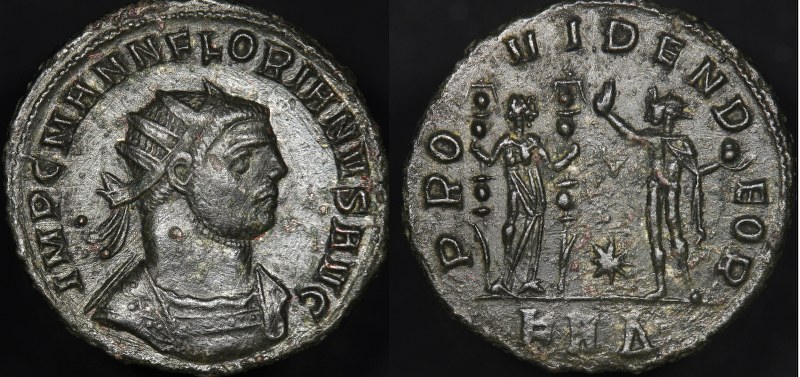 Obv: IMP FLORIANVS AVG, Bust right, radiate, cuirassed and draped with paludamentum.