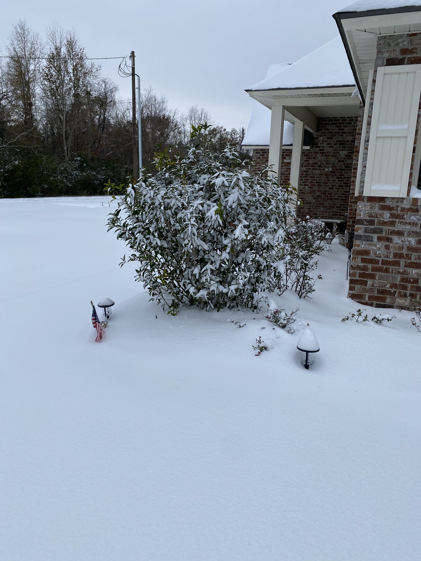 Louisiana Cajun snow. Once in my generation lol. First a flood now snow. Pretty but Cajuns do not know how to drive in this. The state is shut down lol. My roses struggled til the end!