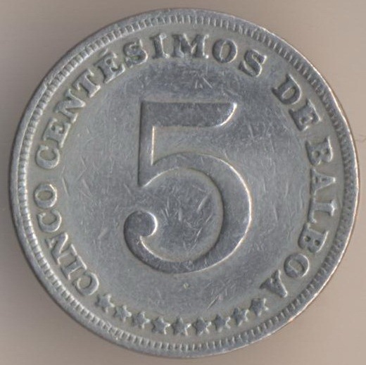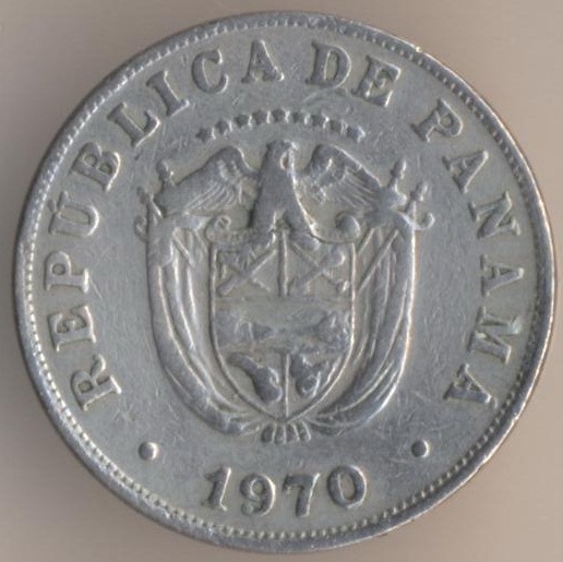 5 centesimos of balboa 1970, copper-nickel, weight - 5 g., size - 21,2 mm, thickness - 1,95 mm, mintage - 5000000 pcs. A coins of this type were released at 1961-62, 1966-75, 1982-83 and 1993.