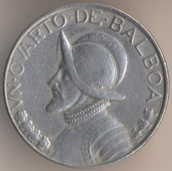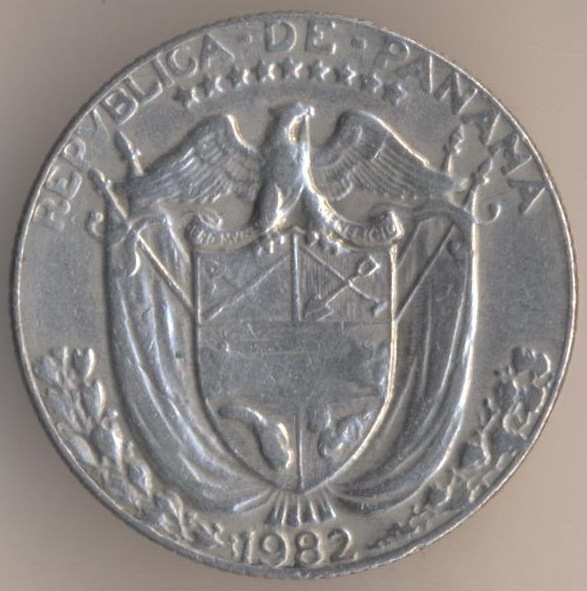 One cuarto (1/4) of balboa 1982, copper-nickel clad copper, weight - 5,67 g., size - 24,26 mm, thickness - 1,69 mm, mintage - 3000000 pcs. A coins of this type were released at 1966-75, 1979-80, 1982-83, 1986 and 1993.