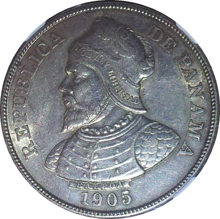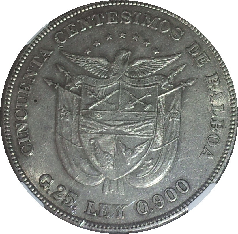 I'll add one, Fifty Centesimos, 1905, silver .900, weight - 25g, size 38.1mm, mintage -1,000,000. Believe it was the only denomination issued in 1905. This type only issued in 1904 (mintage 1,800,000) & 1905. 1,000,000 of the combined dates later melted down to issue a 1 Balboa (minted at San Francisco, 1931).