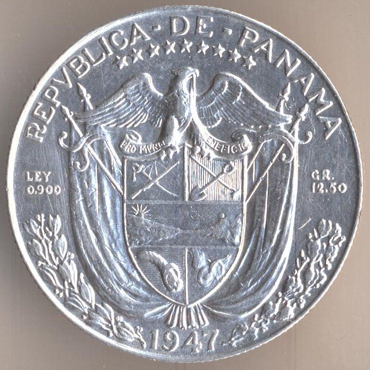 Half balboa 1947, silver .900, weight - 12,5 g., size - 30, 6 mm, mintage - 450000 pcs. A coins of this type were released at 1930, 1932-34, 1947 and 1962.