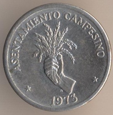 2-1/2 centesimos 1973, copper-nickel clad copper, weight - 1,65 g., size - 15 mm, mintage - 2000000 pcs. A coins of this type were released at 1973 and 1975. Type: "F.A.O."