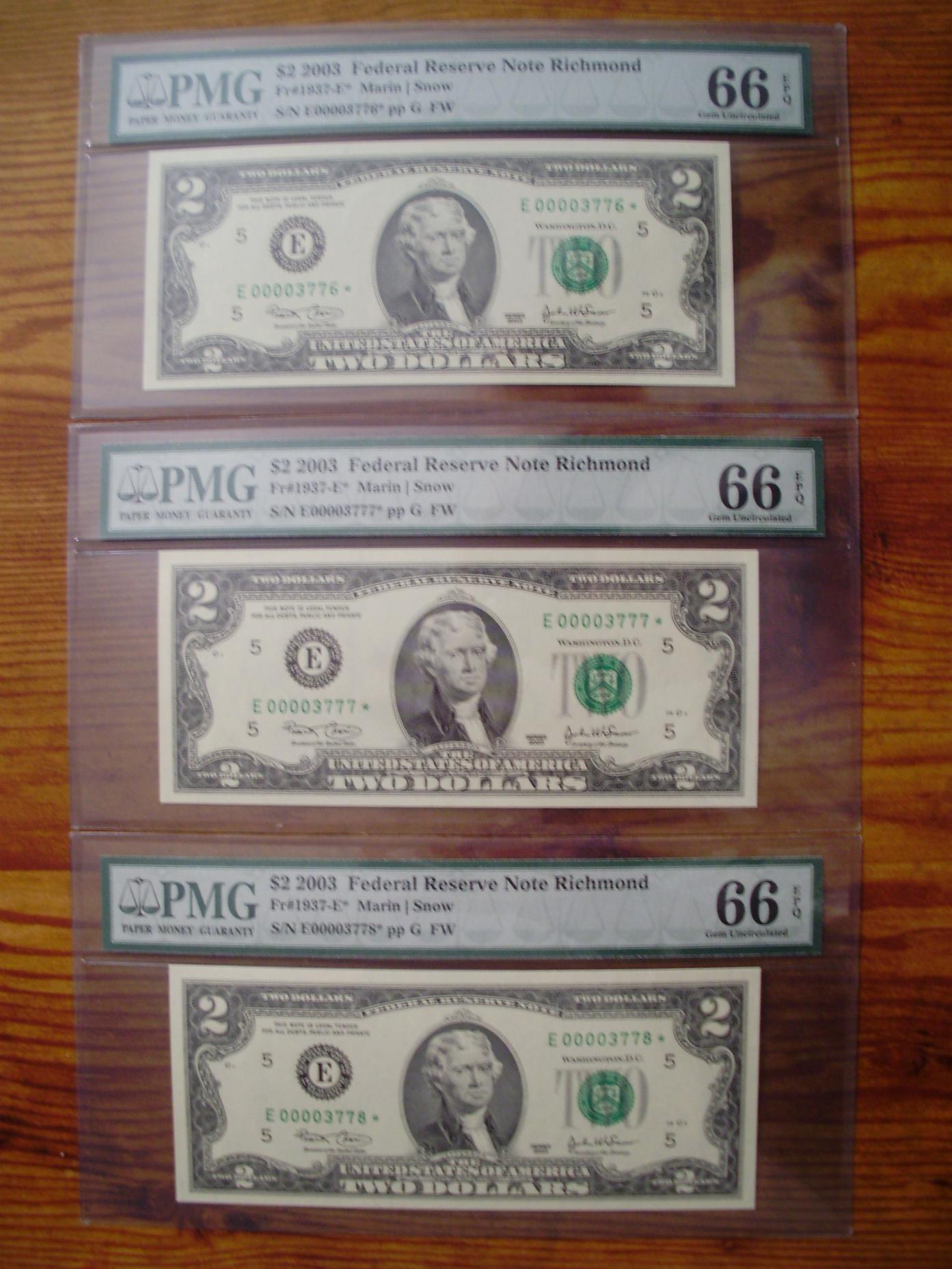 Dr. Kegg: excellent find and thanks for the compliments on my notes. Steve: You have an amazing knack for picking up fancy SNs! WTG!!! avenger: nice error note! hold on to that one and it's consecutive buddy. coinup: nice consecutive notes in high grade. kudos guys! I hope to see more folks rolling out their new notes in this thread, especially what with the holidays here!
