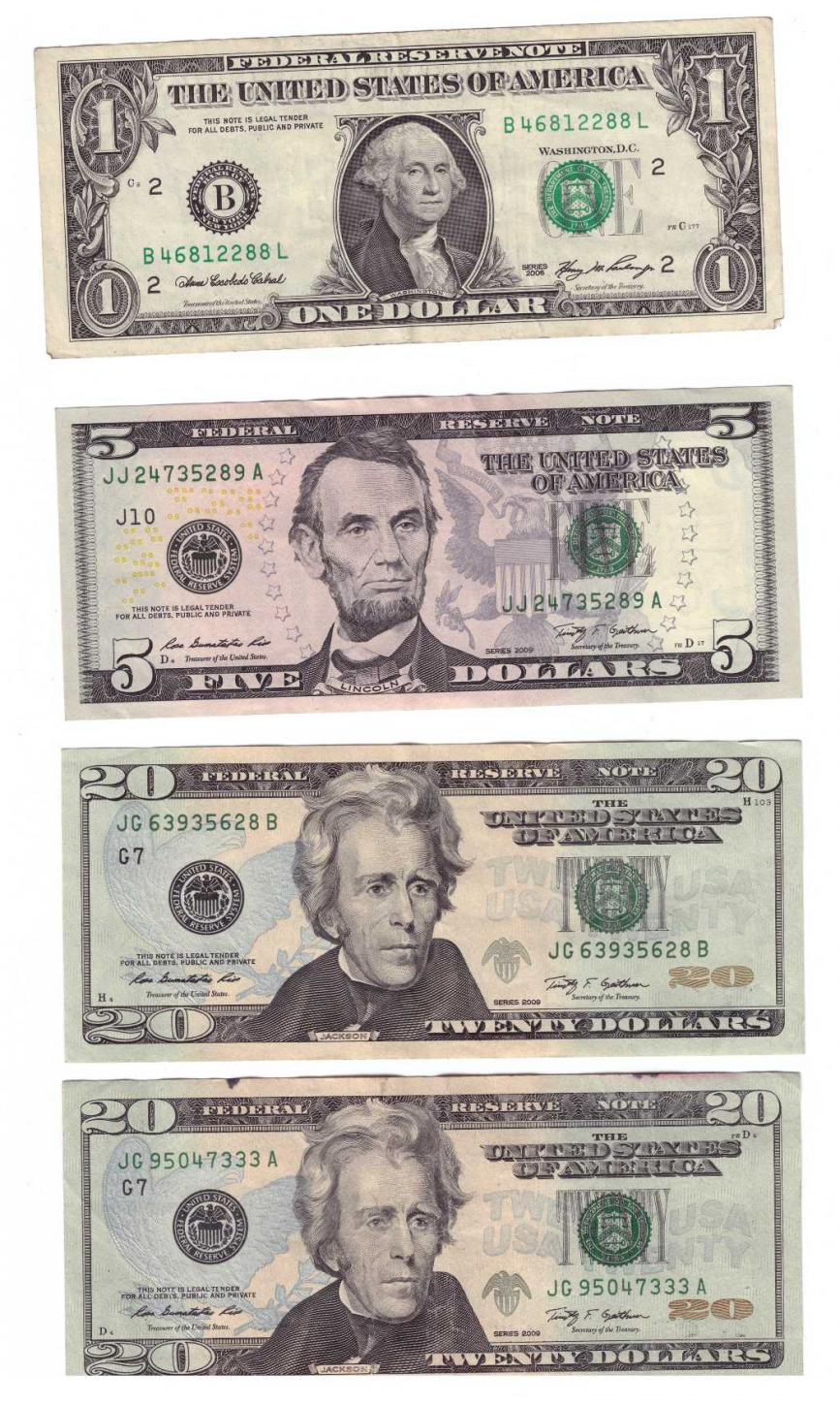 50 US Dollars, I got them after more than 2 years of online surveys 99.99% sure they are common notes in bad shape, will probably exchange them for local currency after some time. I do like the purple color on the 5$ note.