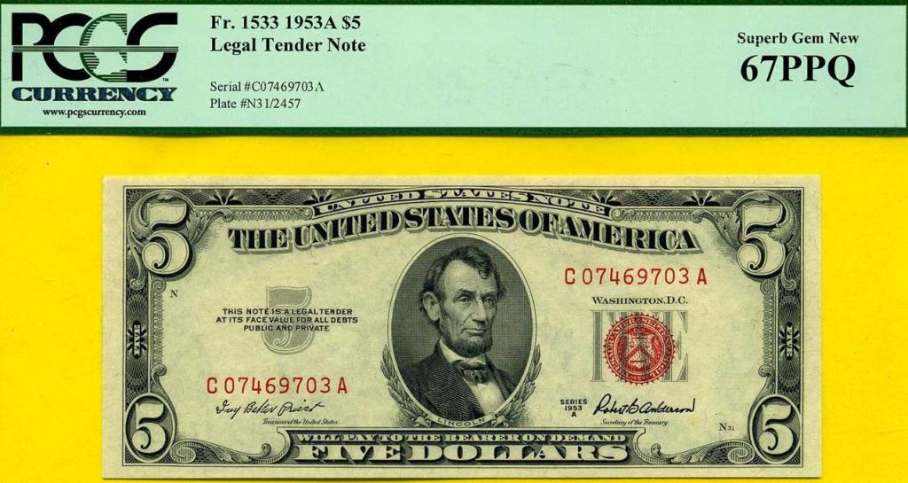 To clarify: I got my numbers mixed up. the 1513* actually has 4 HA auction records and sells for about $350. The reason I got confused is because I also recently bought this Fr. 1533 1953A $5 67PPQ, it has 2 HA records with the last selling for over $400. 67PPQ is also a #2 pop (8/1). I will bet some can guess who I bought it from...