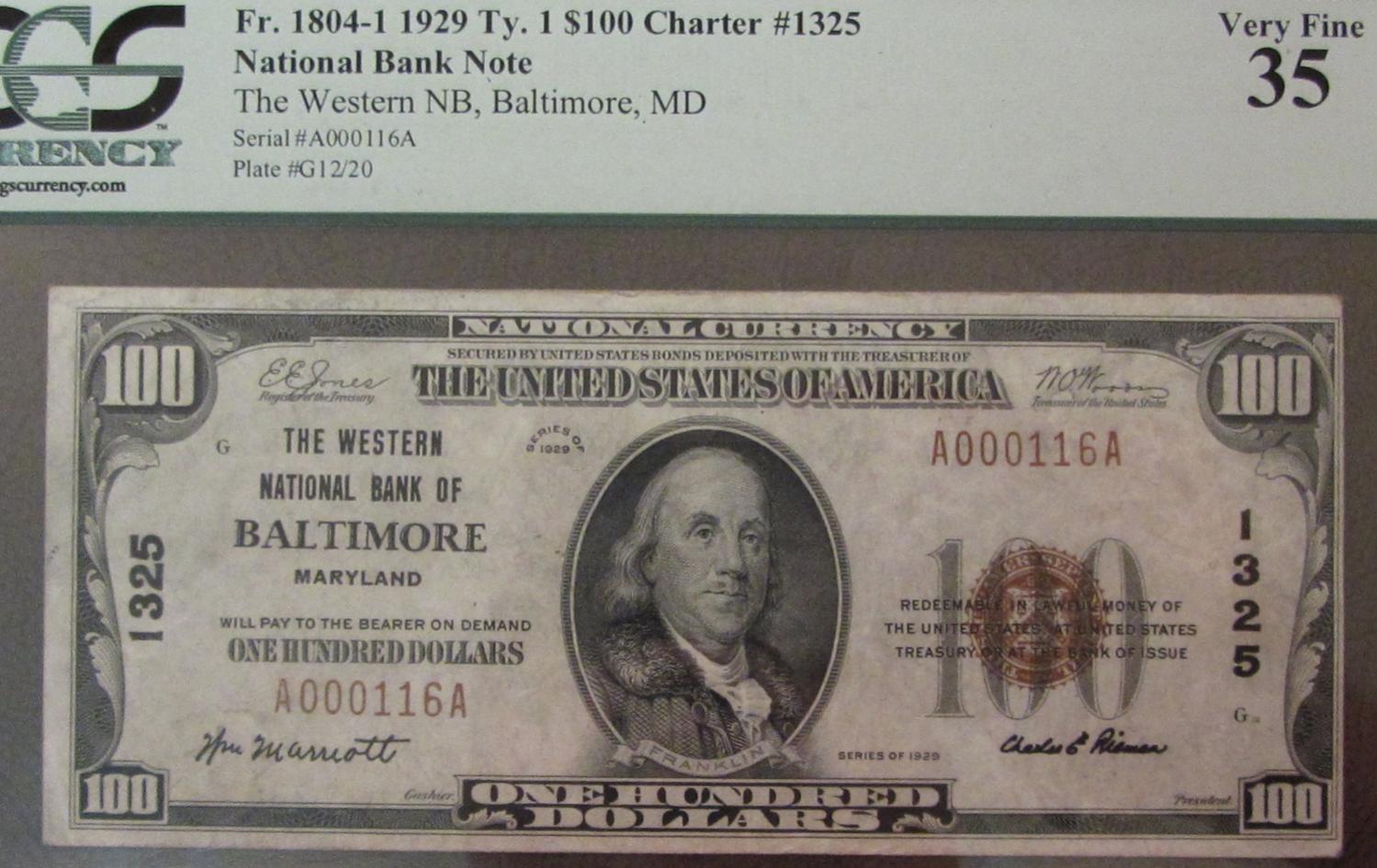 Another day, another mid-Atlantic national acquisition. PCGS VF35 1929 $100 Baltimore, right margin is trimmed mighty tight. Interesting story, I tracked this same note from an old Heritage auction from 2011. Let's just say I bought it for 2/3 what it sold back in 2011. Enjoy guys!