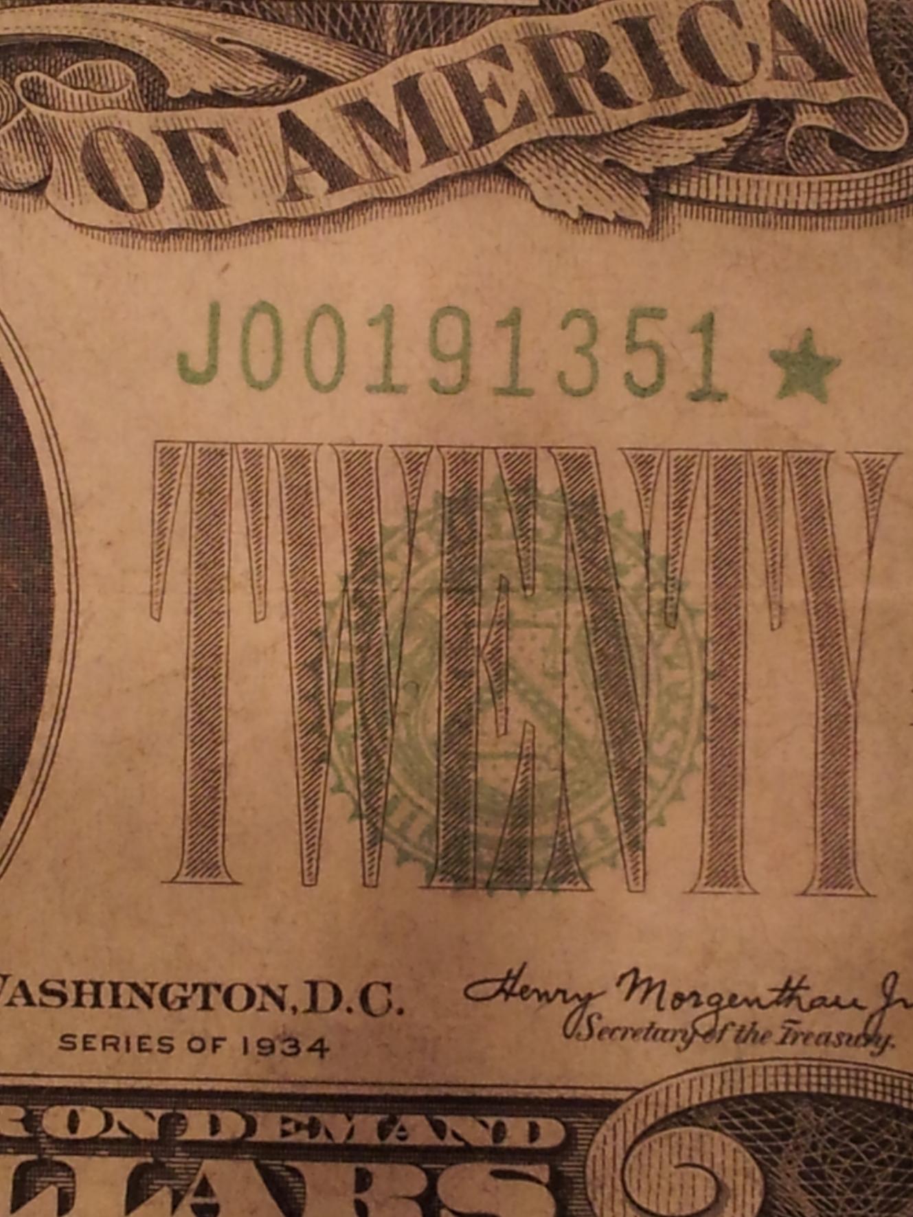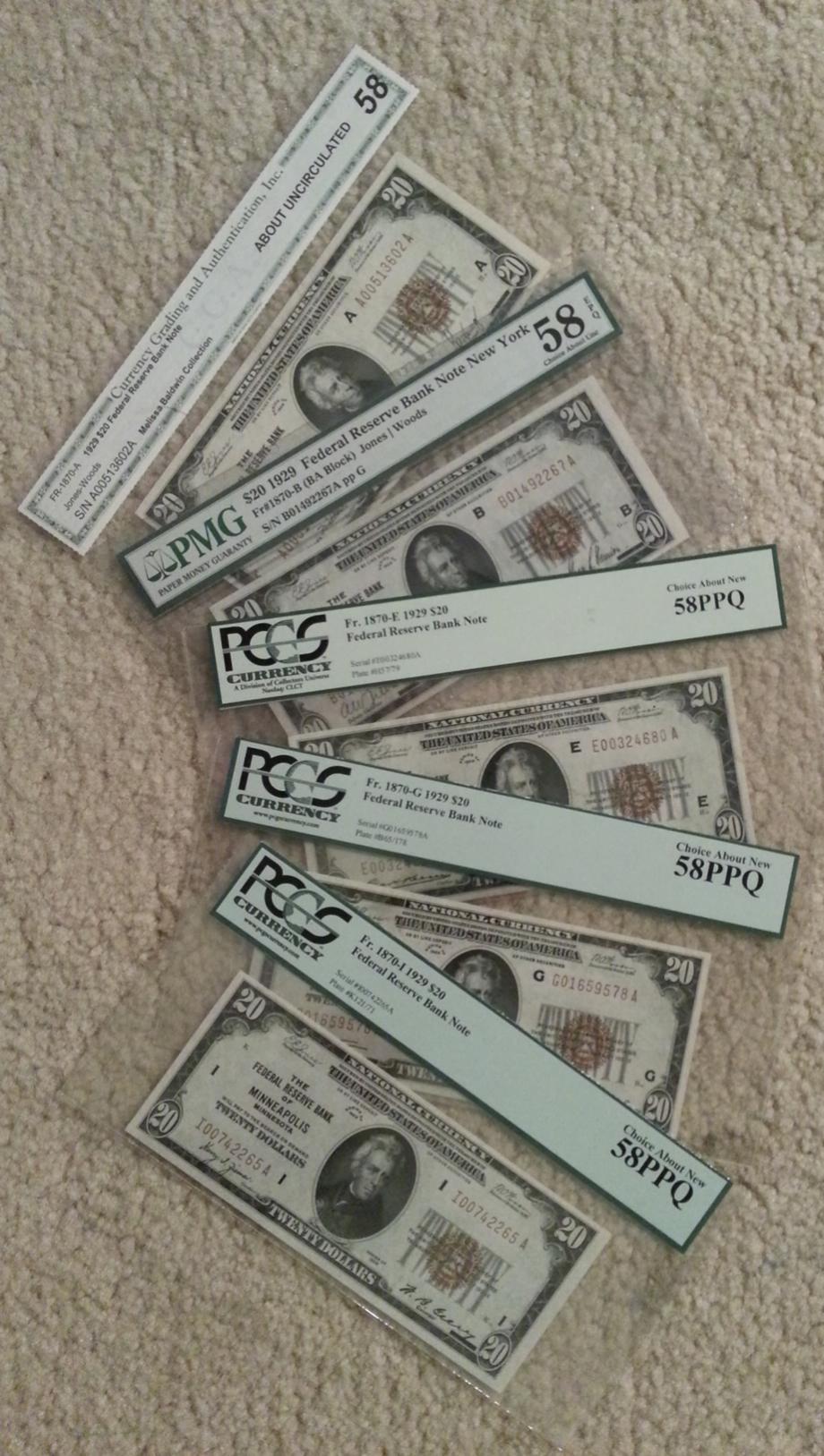 Nice pick up Mec. I almost got an XF 1928c SF $20 for a steal. I almost cinched a lot of $20s a month back with that bad boy in it. I bid minutes after it was listed, but then the seller realized what he put up and tried to get me to retract my bid so he could edit it. When I asked why he wanted to edit it, he asked me which note I was interested in. I told him it was the 1928c note and he claimed to have sold it already. When I told him it would bring big bucks, the note somehow got unsold and he decided to leave the auction as is. The description was vague and the photos blurry. I thought I had it with 4 other 1928 and 34 $20s for just $120. Then I got sniped with a few seconds left and it closed at nearly 400, just over my max. Twas a sad day.