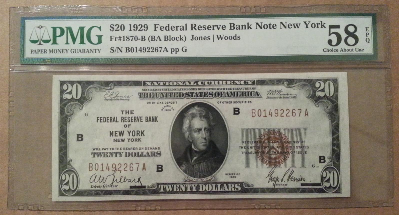 The Philly $20 FRBN 63ppq cost me $49. I used ebay bucks and an ebay coupon to get it down from an already low $110 hammer price. Someone might call me crazy for trading down like that, but I haven't seen another 58 new york for sale in over a year.