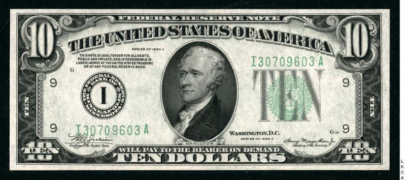 Great info Lettow - woohoo, mine is the real McCoy! But that might make it just extra common. Oh well, always did prefer the reals to the fakes. Today's new pickup is below. I don't get as many new US large size notes as I'd like (who does?) but occasionally a bargain appears and I can strike. This sucker showed up with a very nice BiN and it therefore had to be acquired. It's a slight upgrade over my old note but an upgrade it is so into the frame it goes!