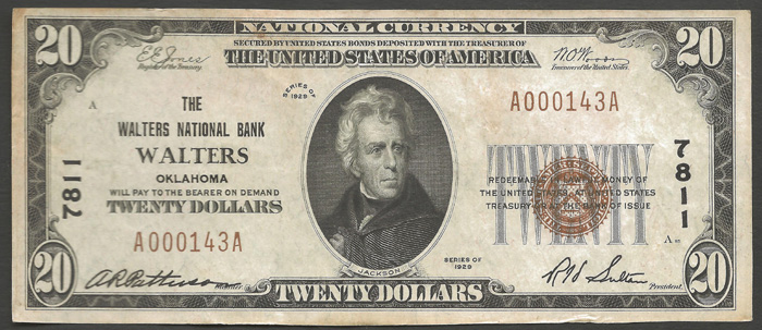 That is funny, but good luck to you because I have seen lesser examples go for more than this one did. When I looked at the auction I was happy to see it was so nicely centered so I put in my best price and it held out...by a tiny margin... PS: Beautiful Victory Note and very nice FRBN! Here is a lovely example from Lyn's recent auction: Top Pop 7/0 Oh and I cant forget this great pickup from Memphis. A Scarce Walters OK note that is likely the best one available... I almost lost out on this note as I had reached a deal for it but then the seller had a dealer buy out his inventory and the note was included. Luckily I was able to secure the note from the new owner with the same deal and I am very happy with it!!!