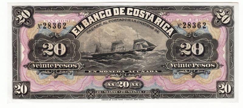 Interesting JIM discussion.... And I love the Educational Note! I sold/Traded one in Memphis... I finally found an example of this Costa Rica 20 Peso remainder that I was happy enough with to pull the trigger: Beautiful colors and design IMO. The lady on the back is certainly better looking than some of the Greek "Dandy's" MEC has posted... LOL