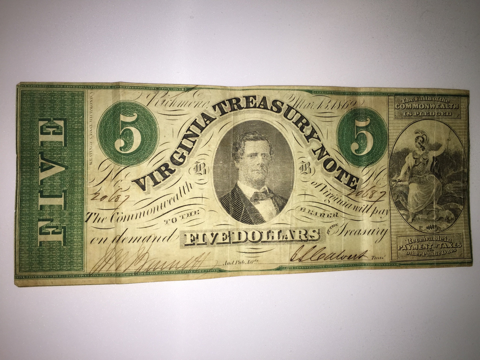 Finally, I've been trying to find this $5 Virginia Treasury Note in a circulated grade at a fair price for quite some time!