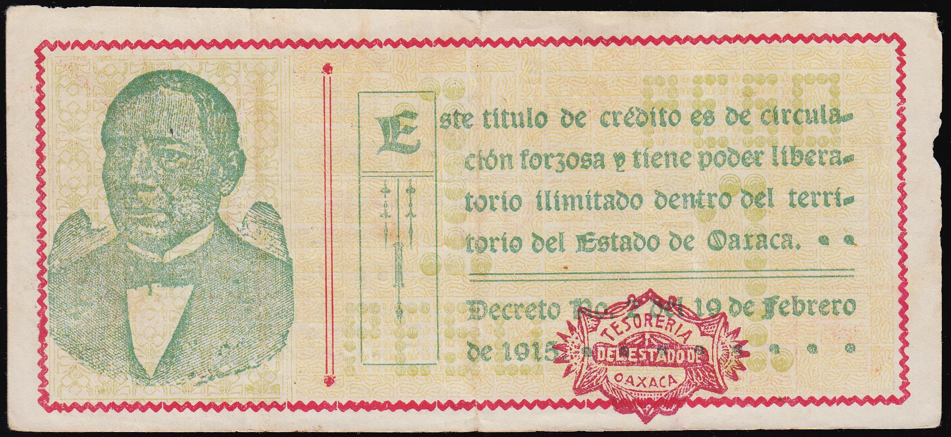 This rounds out the three-note set Series 1914 Chihuahuan 5, 10 and 20 pesos.