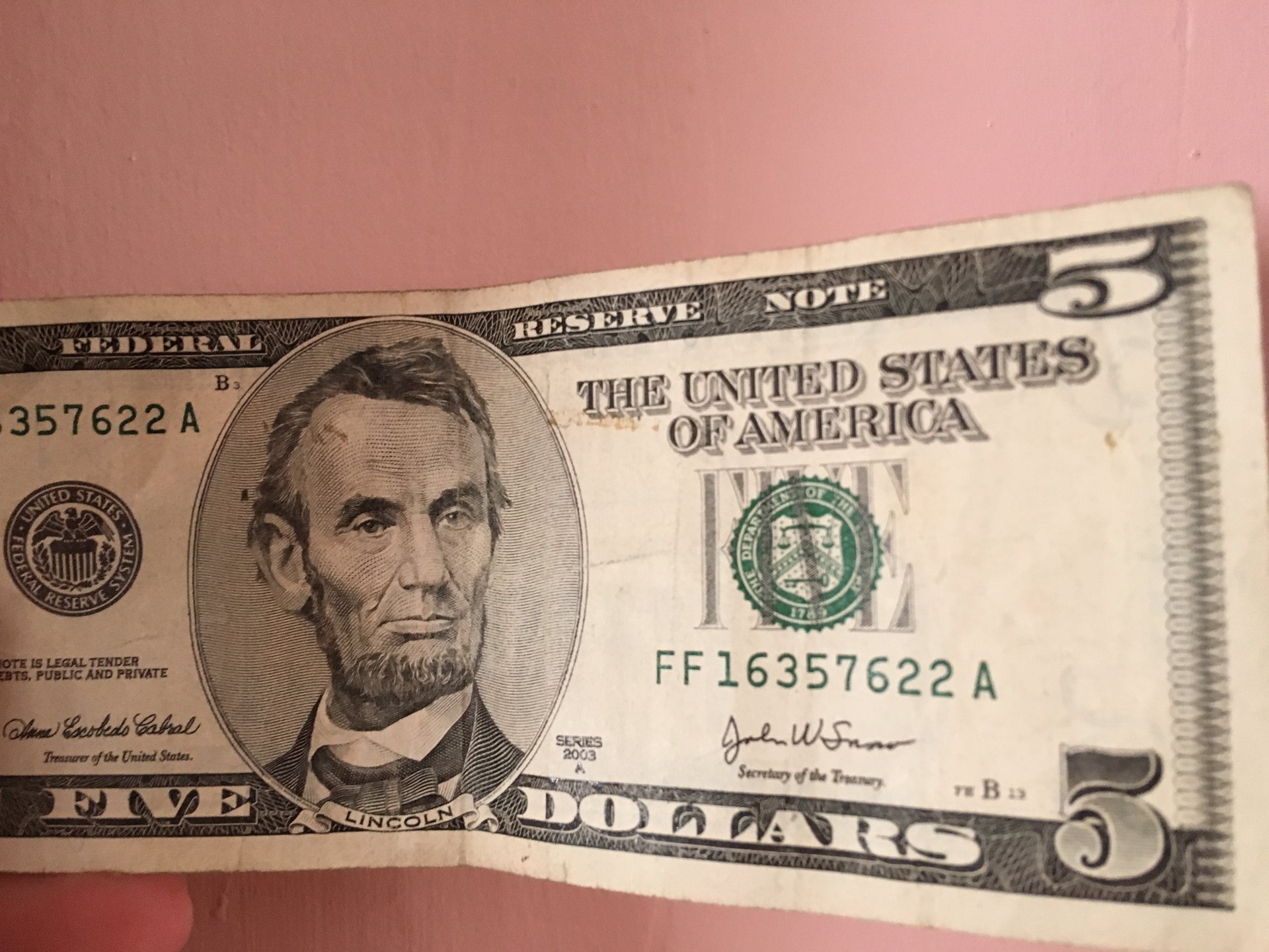 Nothing special over here, but a lady in front of me paid for her stuff with a five dollar bill with one of those smaller, non-purple fives in the corner. I didn't see the year, but when I got it as change off of a $10 bill, I saw it was one of the more common 2003A bills. Disappointing, I thought it was older (1999 or 2001).