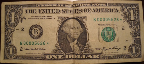 I've been saving star notes from change for a long time. The last one I got was from a tip, and it's probably the lowest serial note I've ever received, star note or not. It's been a good week for change for me, what with finding a 2002 Indiana state quarter with a die crack and what I think to also be a small cud error as well as this. Wish this bill had been treated better, but I'm keeping it all the same!