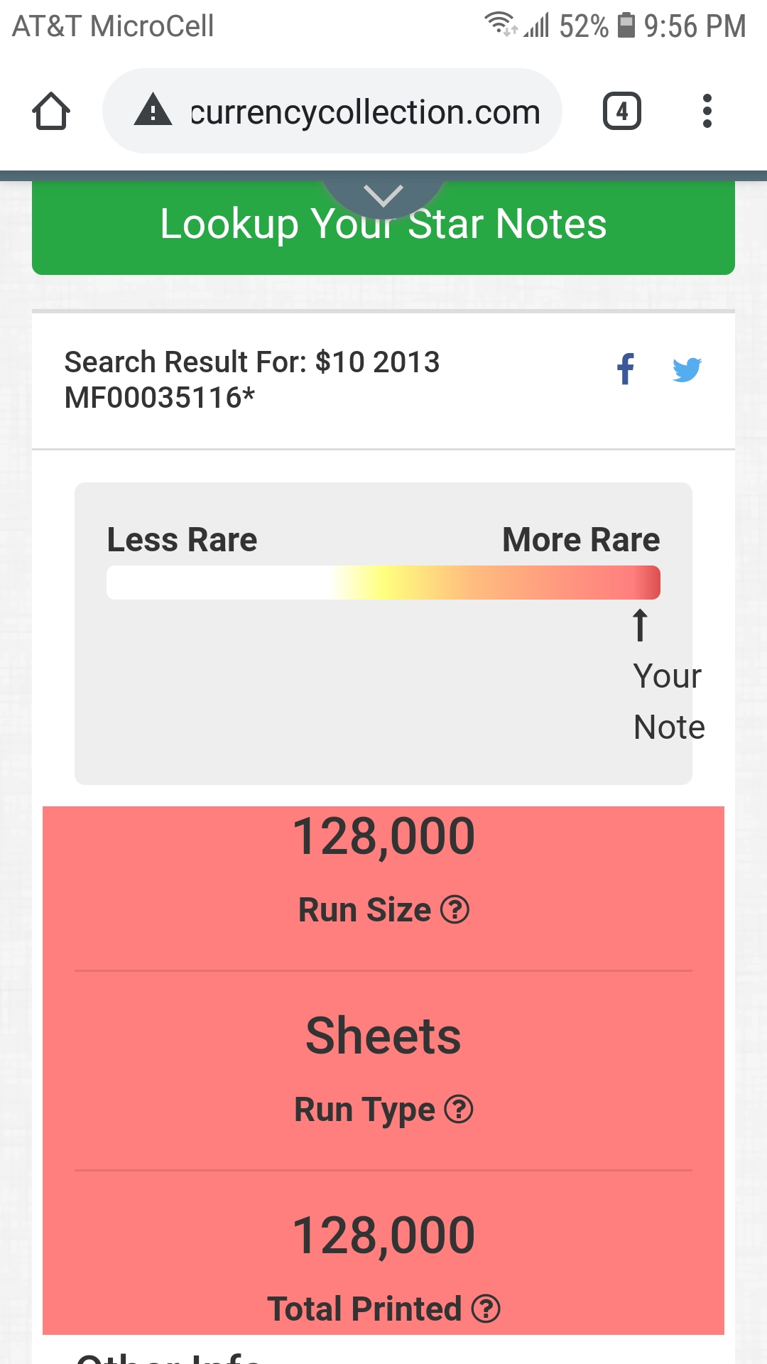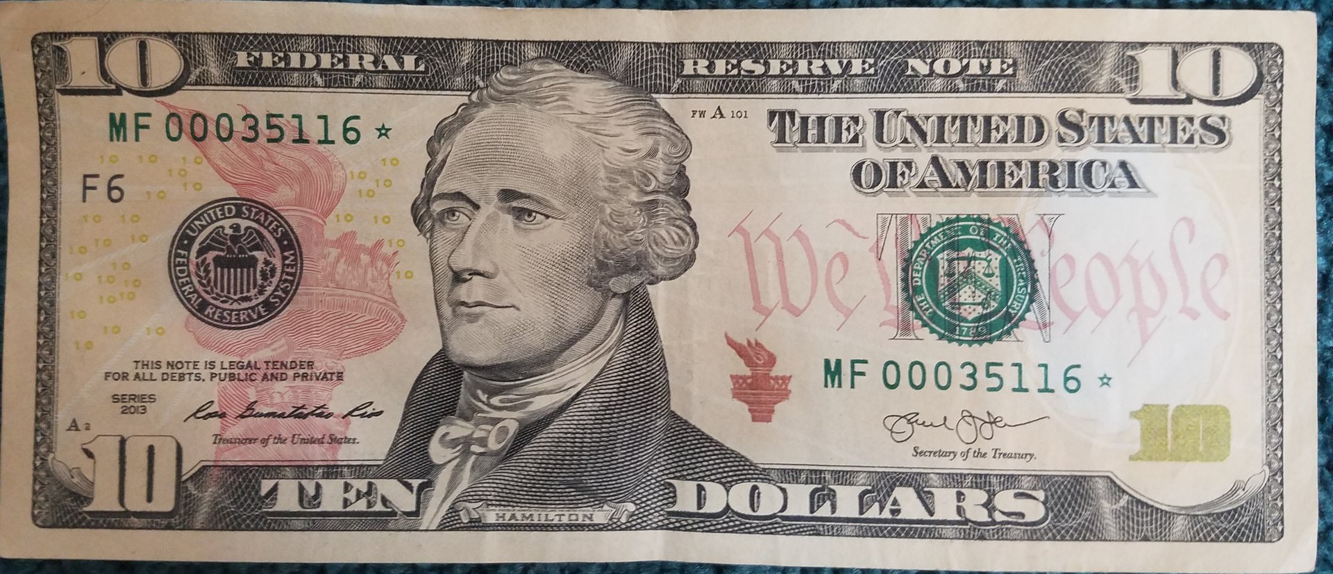 This is my 2nd wild caught star. The first was a $1 FRN. My $10 pictured above is one of 128,000 printed. I'm liking that run #.