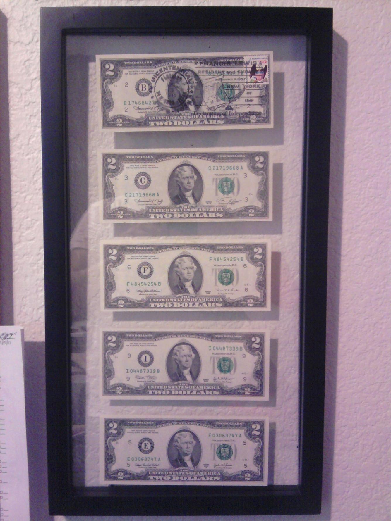 On the year of the bicentennial of the United States, the $2.00 Federal Reserve Note was issued on 13 April 1976 (Thomas Jefferson's birthday). People took the newly issued notes to the post office and placed stamps on the note to have them postmarked with the date of the first day of issue. Most of the $2 notes with stamps and postmark will have the 13 April 1976 postmark. Fewer will have a postmark of 04 July 1976, the day the United States celebrates Independence Day.